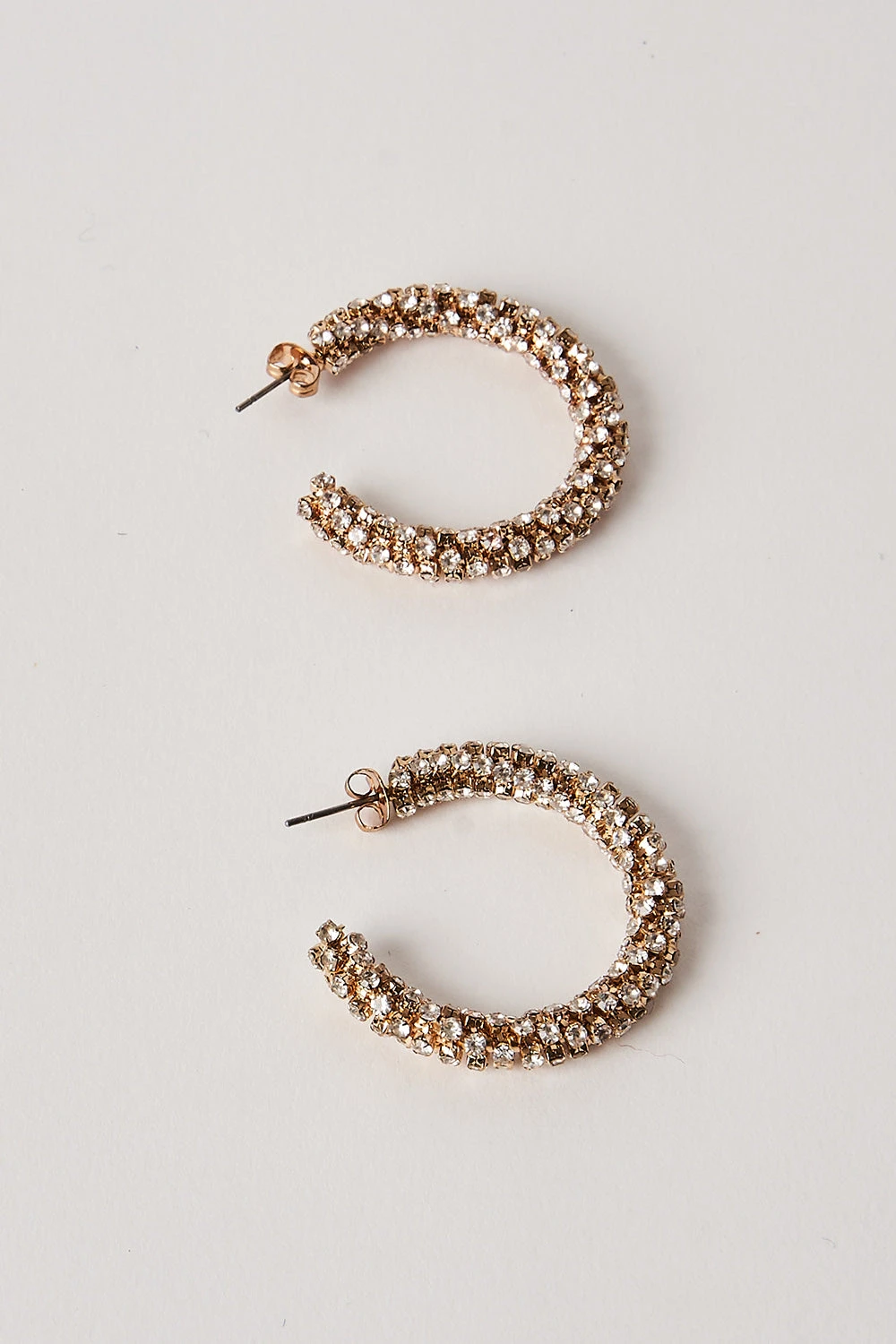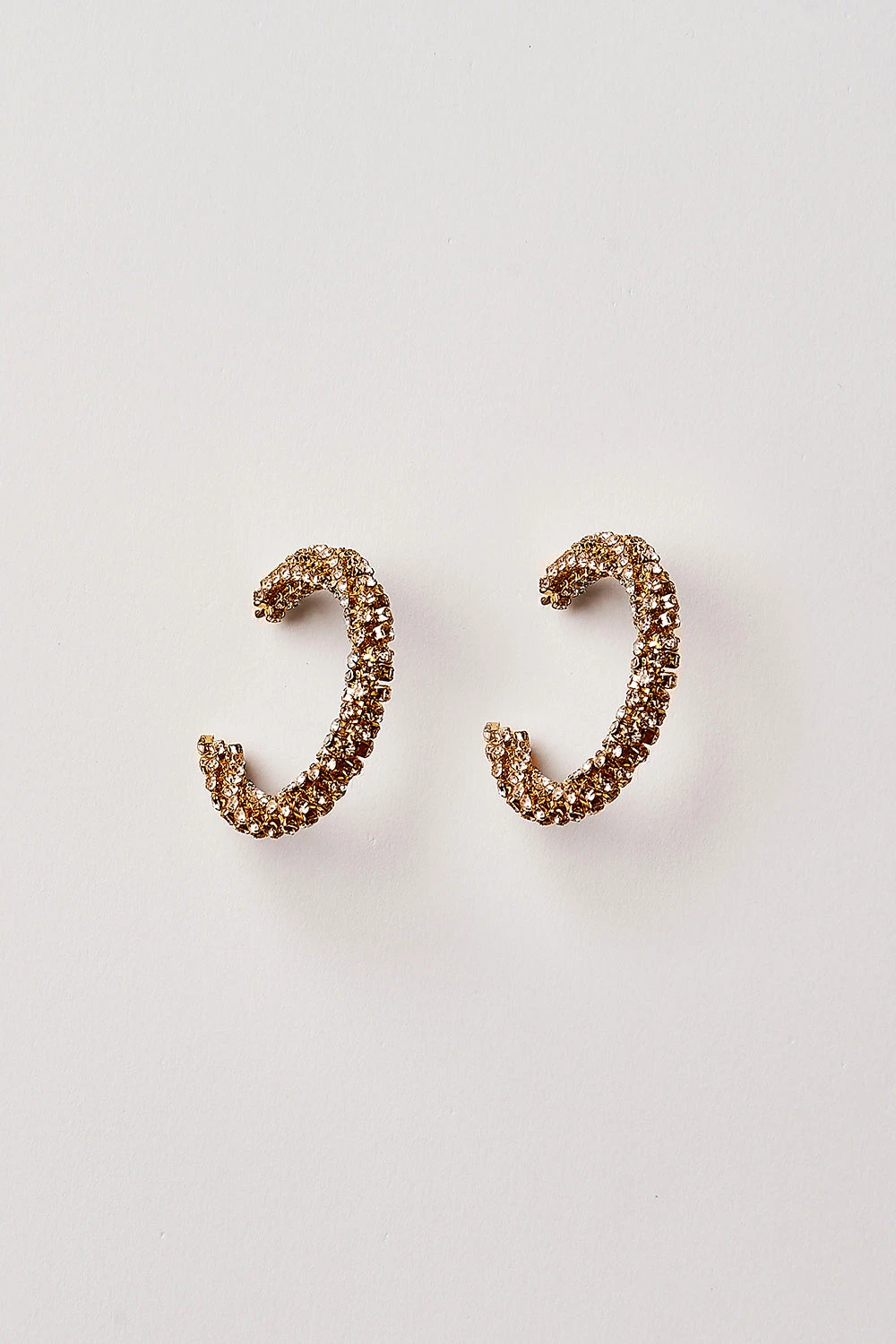 Elevate a monochromatic look with these jazzy Rhinestone Hoop Earrings. Adorned with diamantes creating a lovely twisted effect in gold and silver, these textured earrings are a fun bit of bling.