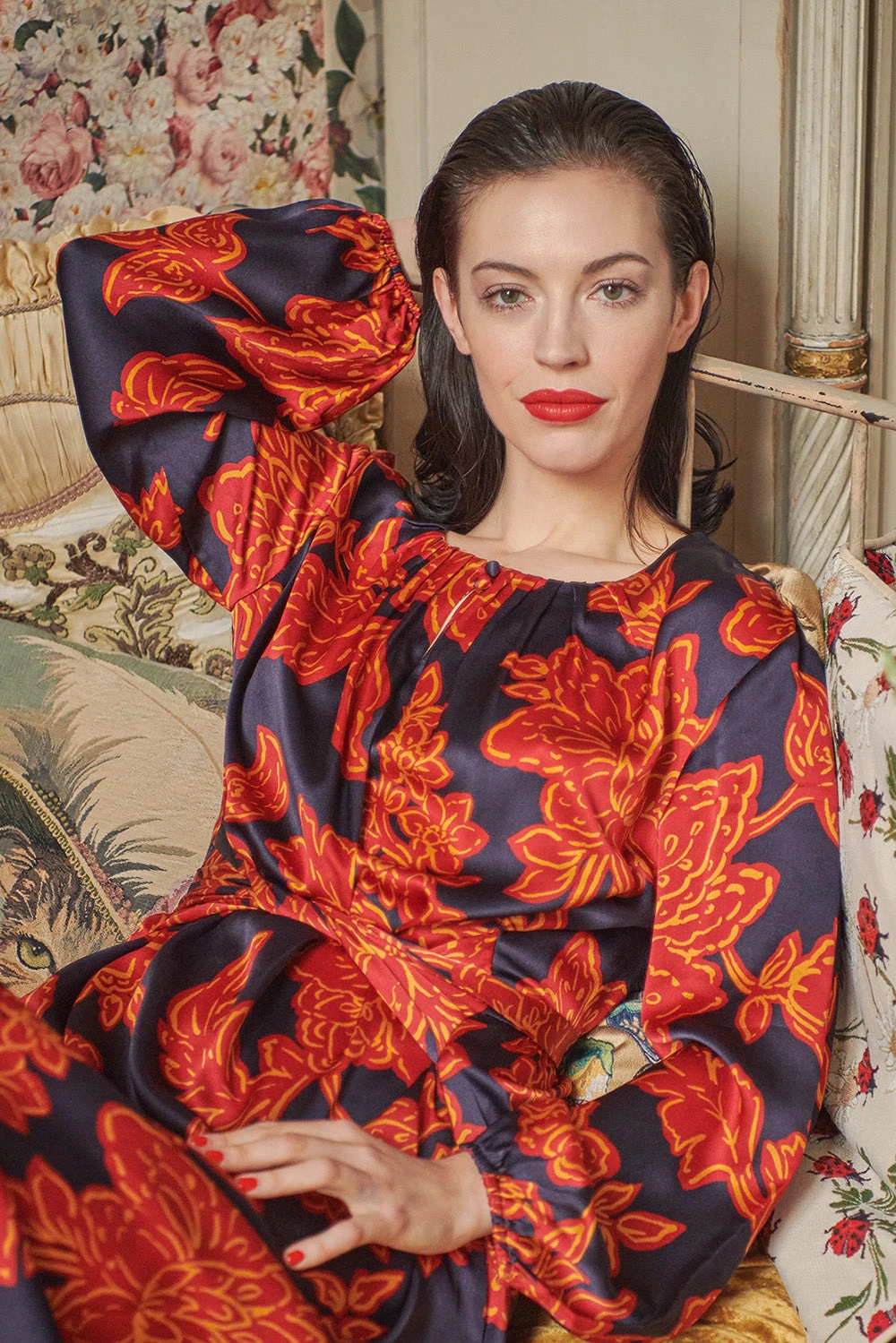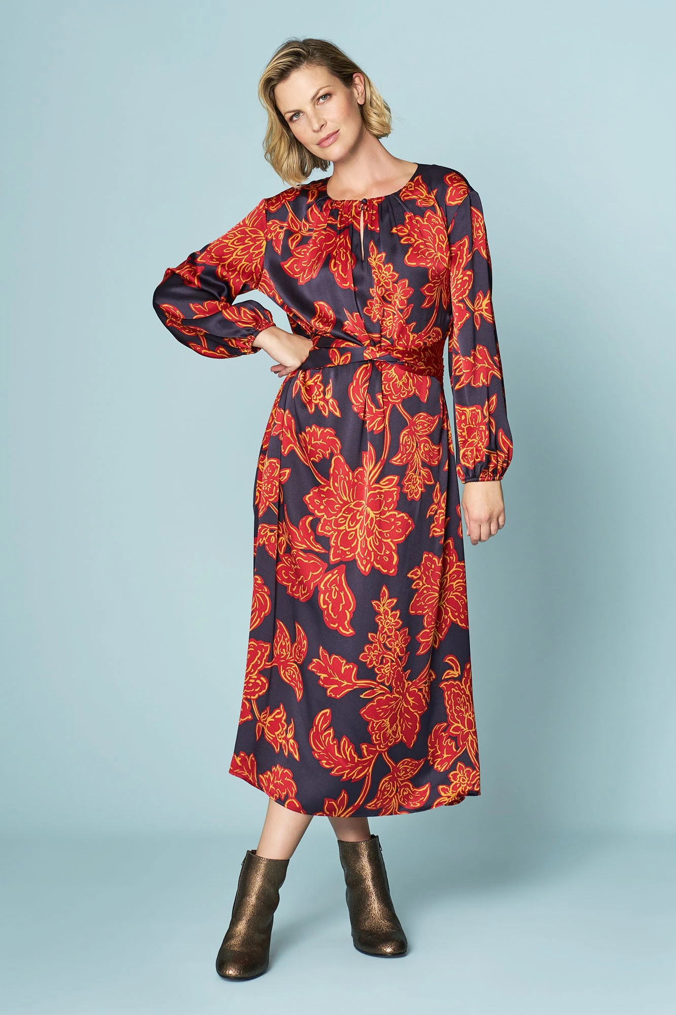 Our luxurious Silk Tie Waist Dress is crafted from 100% silk and printed in the glamorous Saint-Germain Floral. This is the perfect dress for a winter special occasion. Midi-length, this beauty can be tied to your liking at the front, back or with a crossover effect. Style it your way and dress it up or down with the Seine Double Zip Ankle Boot and Mohair Blend Knit Cardi.