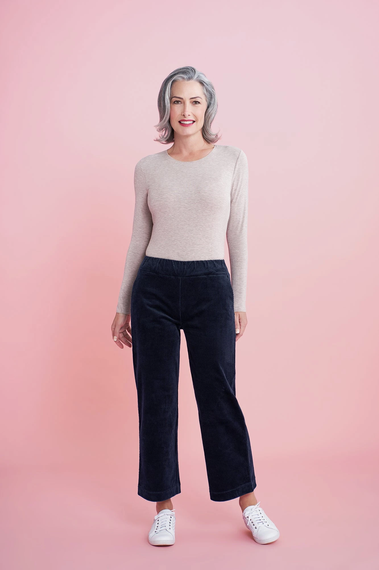 Say enchanté to our Stretch Cord Pant in chic French Navy. The pant features a chic 7/8th wide leg, elasticated waist, and pull-on style for all day comfort. Embrace your inner Parisian and pair this pant with a très chic top, like our Shirred Yoke Top for feminine French-inspired style.