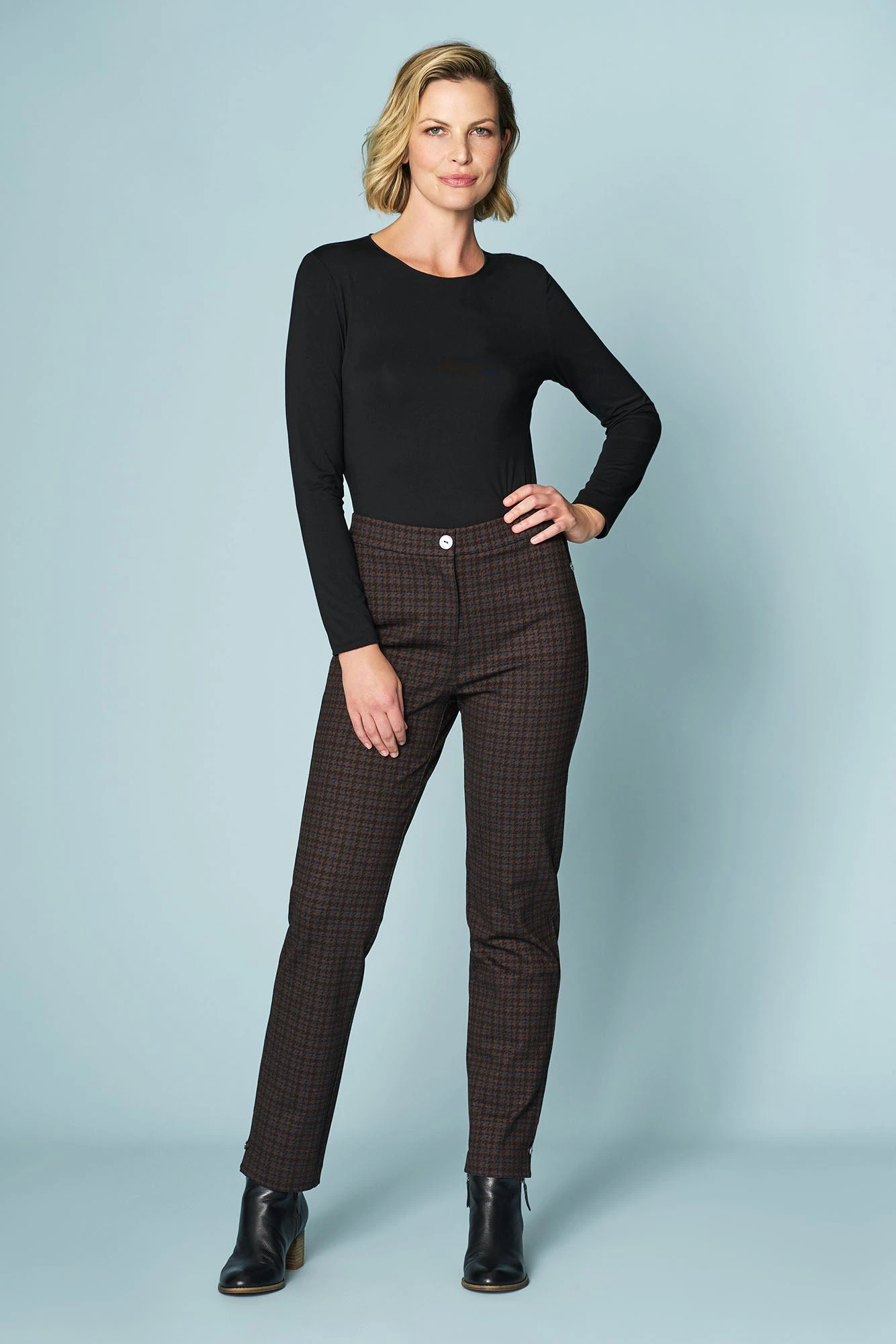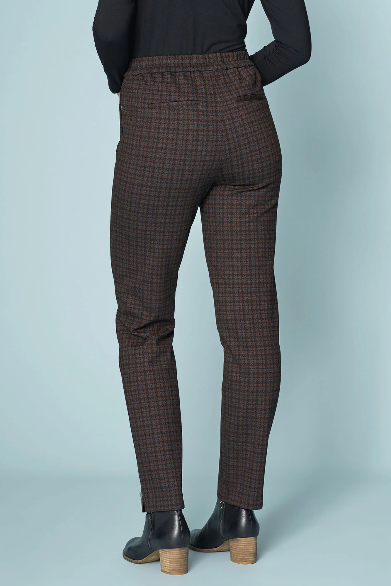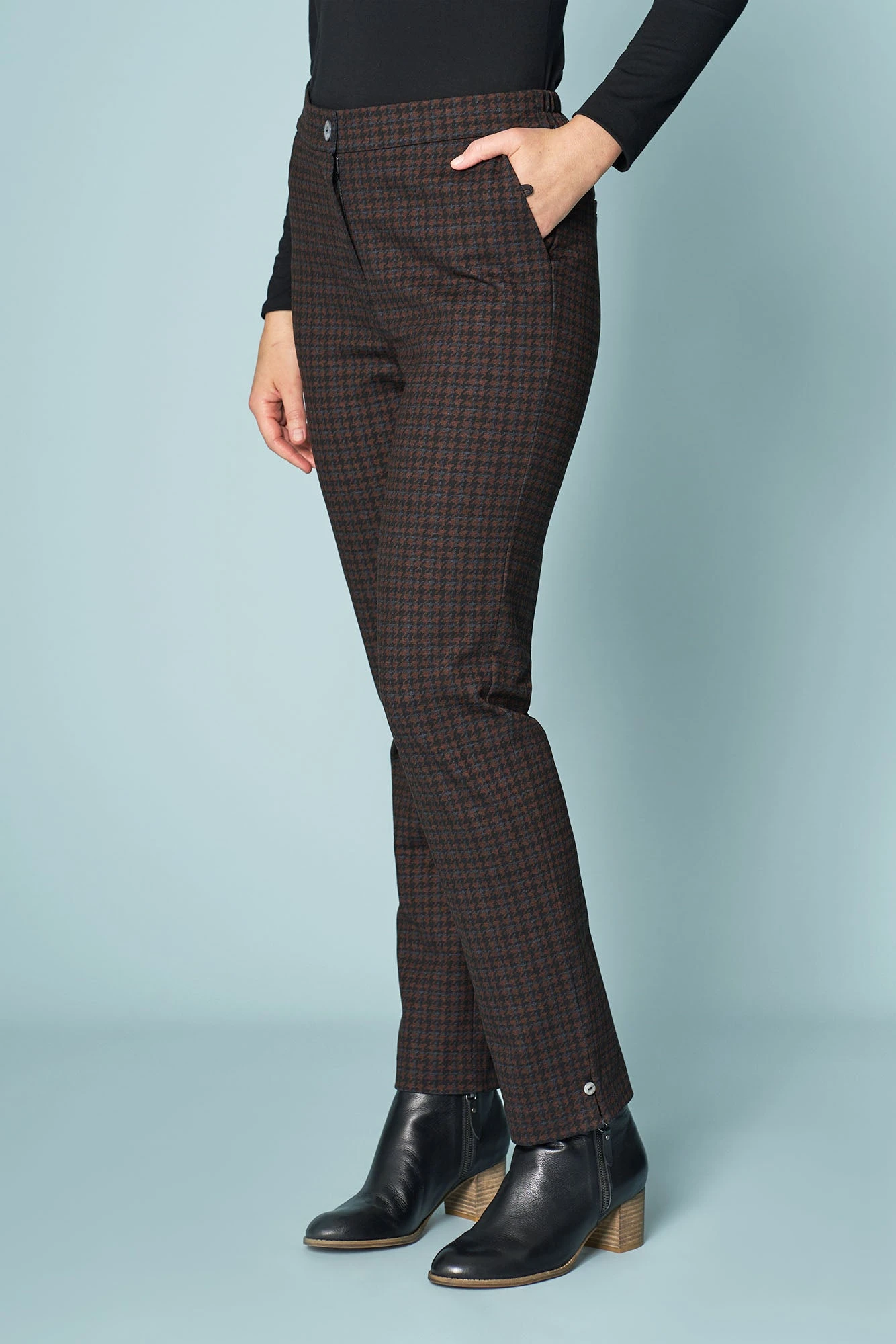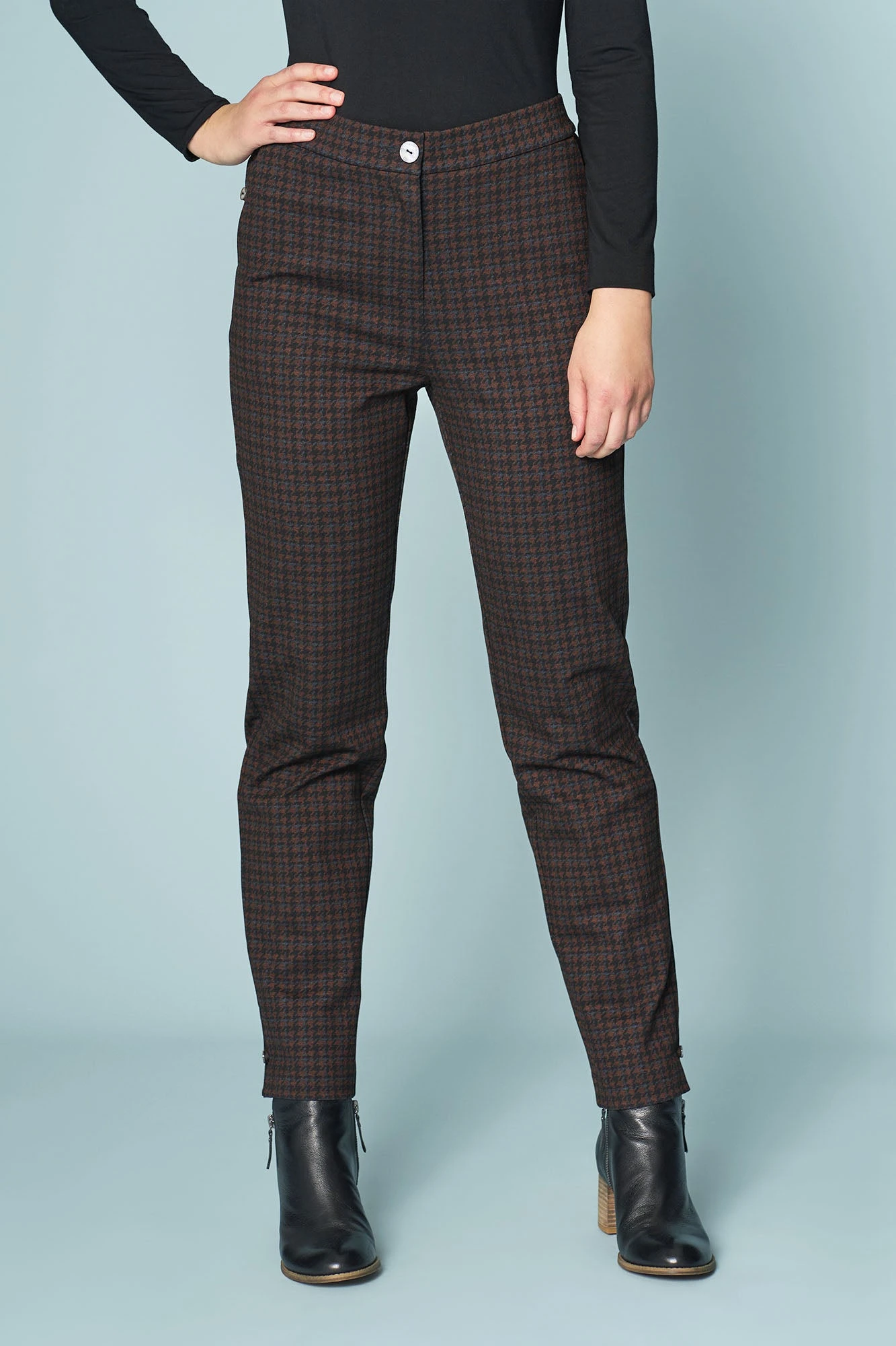 Our Ponte pant is a Blue Illusion favourite. Featuring the elegant Cinnamon Houndstooth print of our Boulevard Saint-Germain collection, this is a pant that will add instant style to any outfit. Designed with all-day comfort in mind, this pant is crafted from stretch ponte fabric which moulds to any body shape to create a smooth, streamlined silhouette.