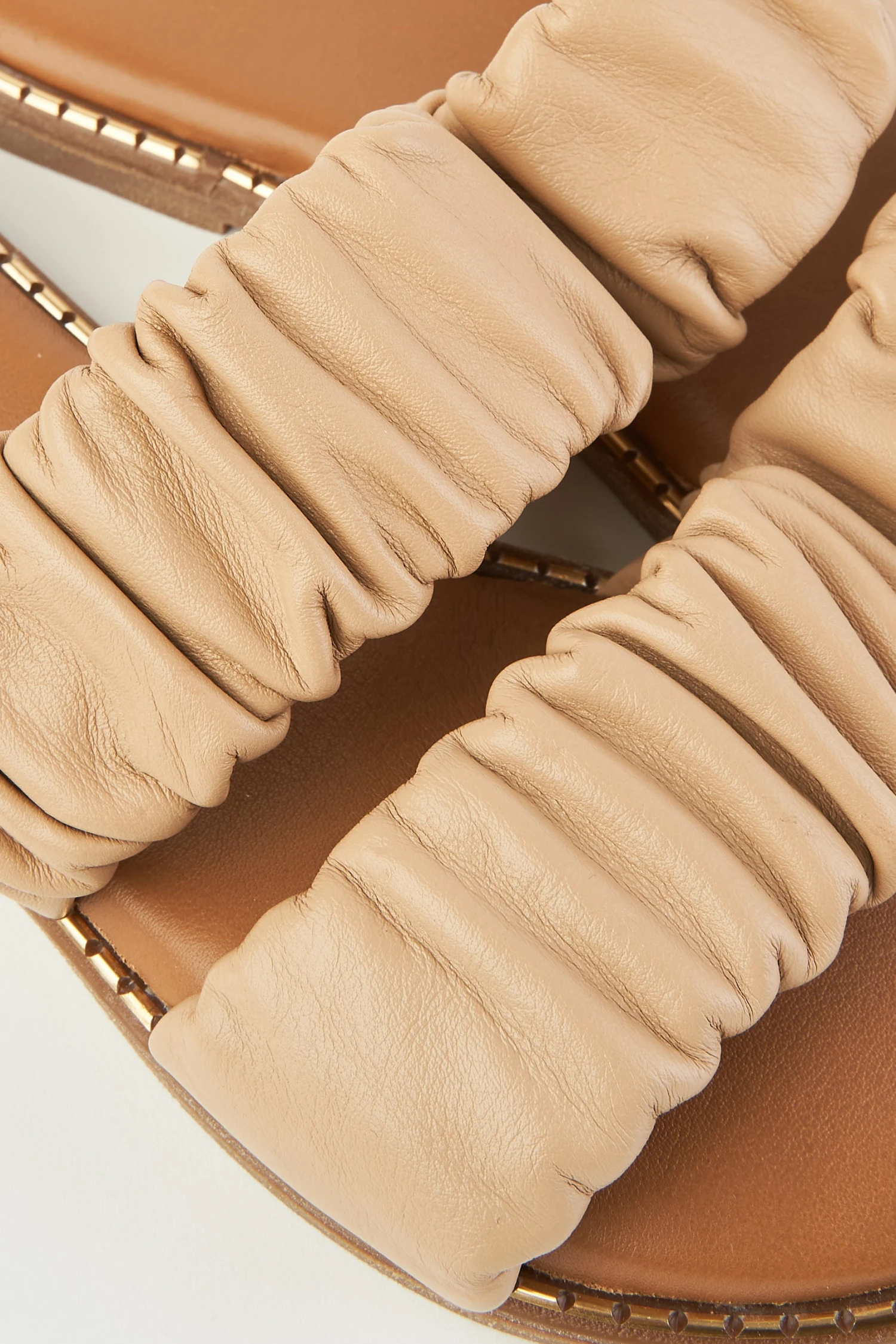 Ultra-comfortable and modish, our 100% leather Teak Sandal has been crafted with all-day wear in mind. With a metallic gold trim and gathered double band, this flat offers a neutral base.
