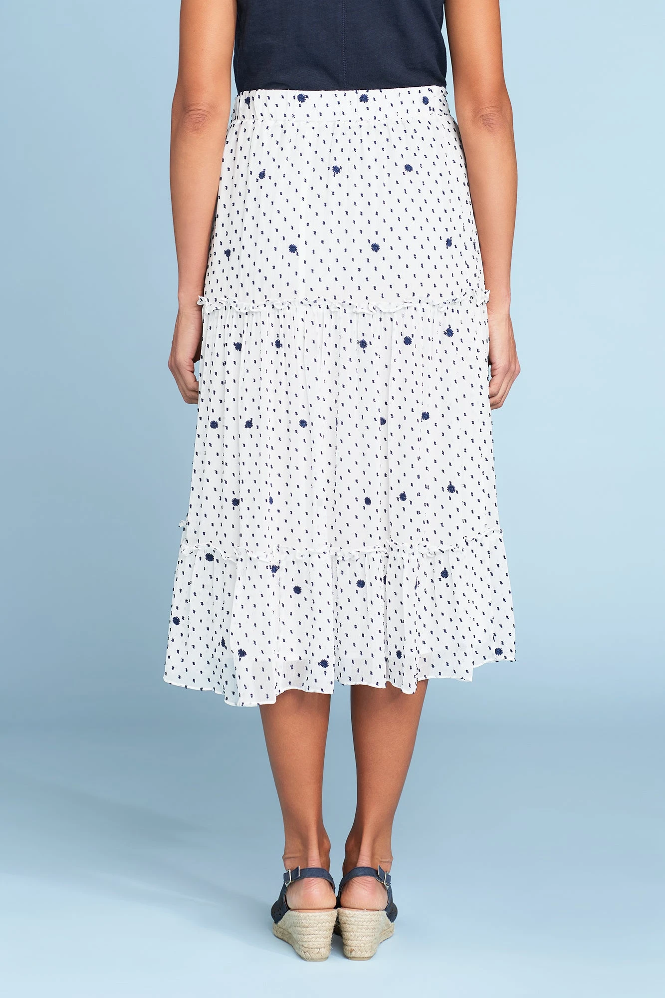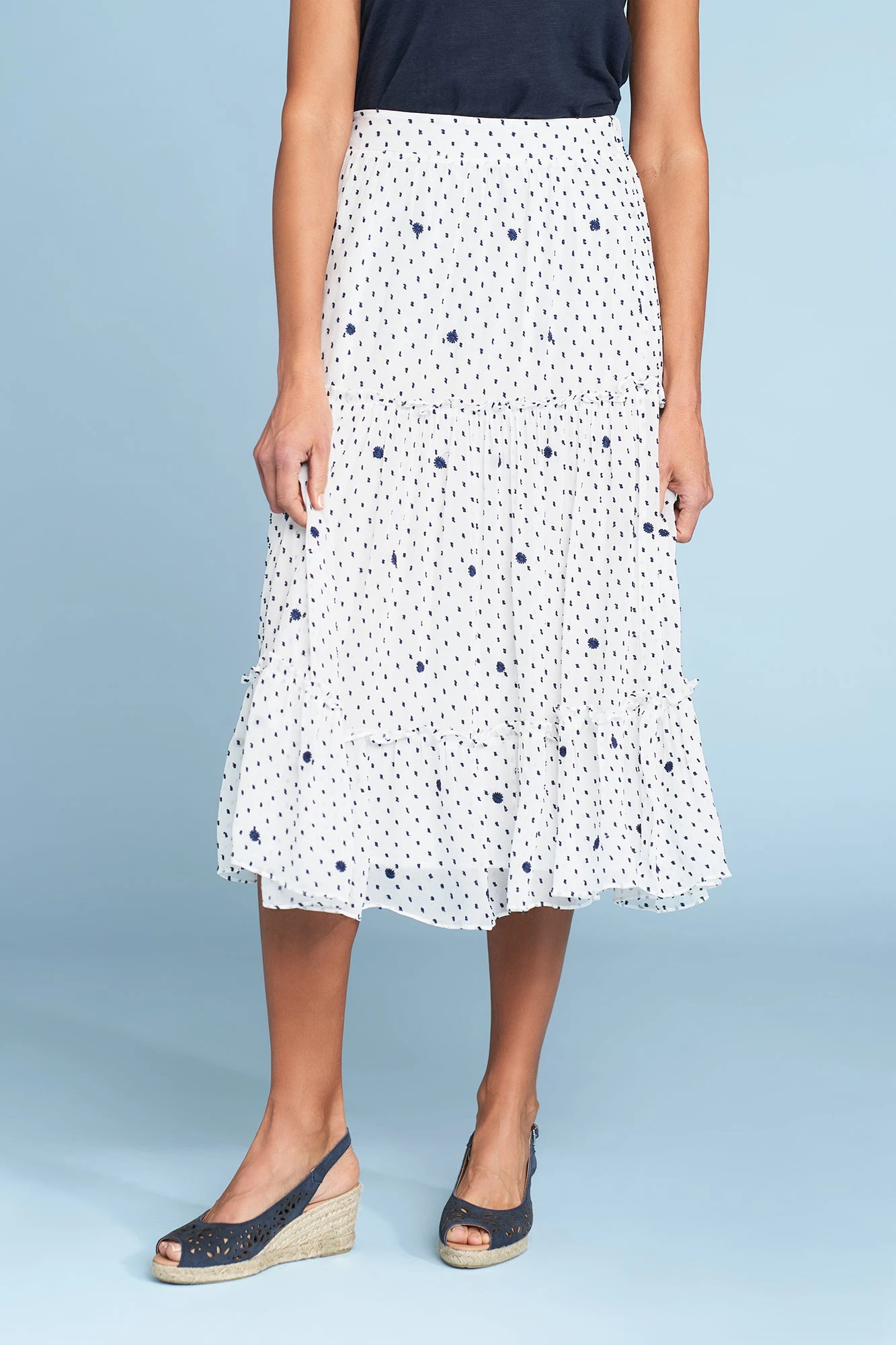 A dreamy, maxi-length skirt with flair, say bonjour to our Tiered Frill Skirt. A floaty, feminine piece crafted from crinkle georgette, this skirt offers a tier design with ruffle detailing as well as sweet floral embroidery in an all-over Ink and White Flower Clip. Add our Lace Insert Blouse and you have a complete springtime look.