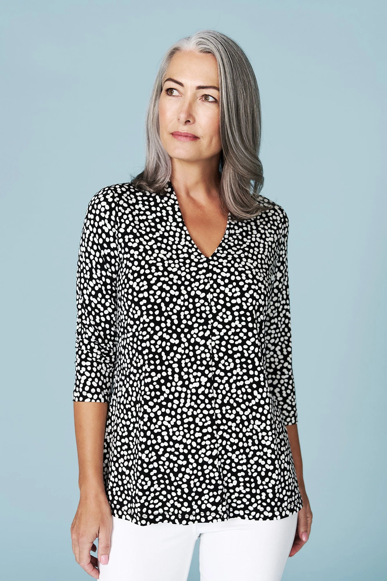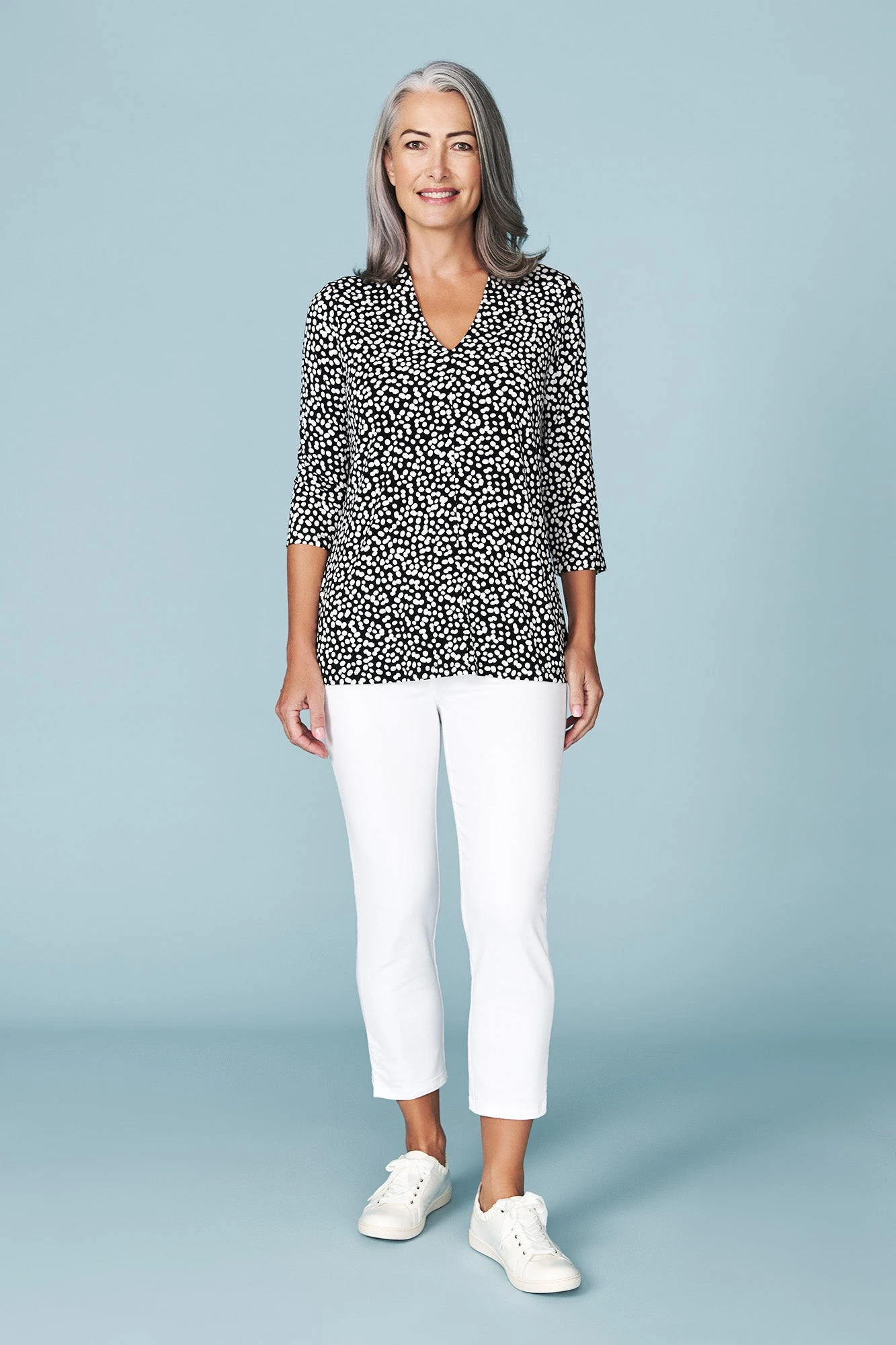 Featuring the Black and White Painted Polka Dot of our Rue des Barres collection, you’ll feel like a true Parisian when wearing this beauté. With lovely stretch, perfect for all-day wear, pair this top with our signature Bengajean® and a comfortable plimsol to complete your look.