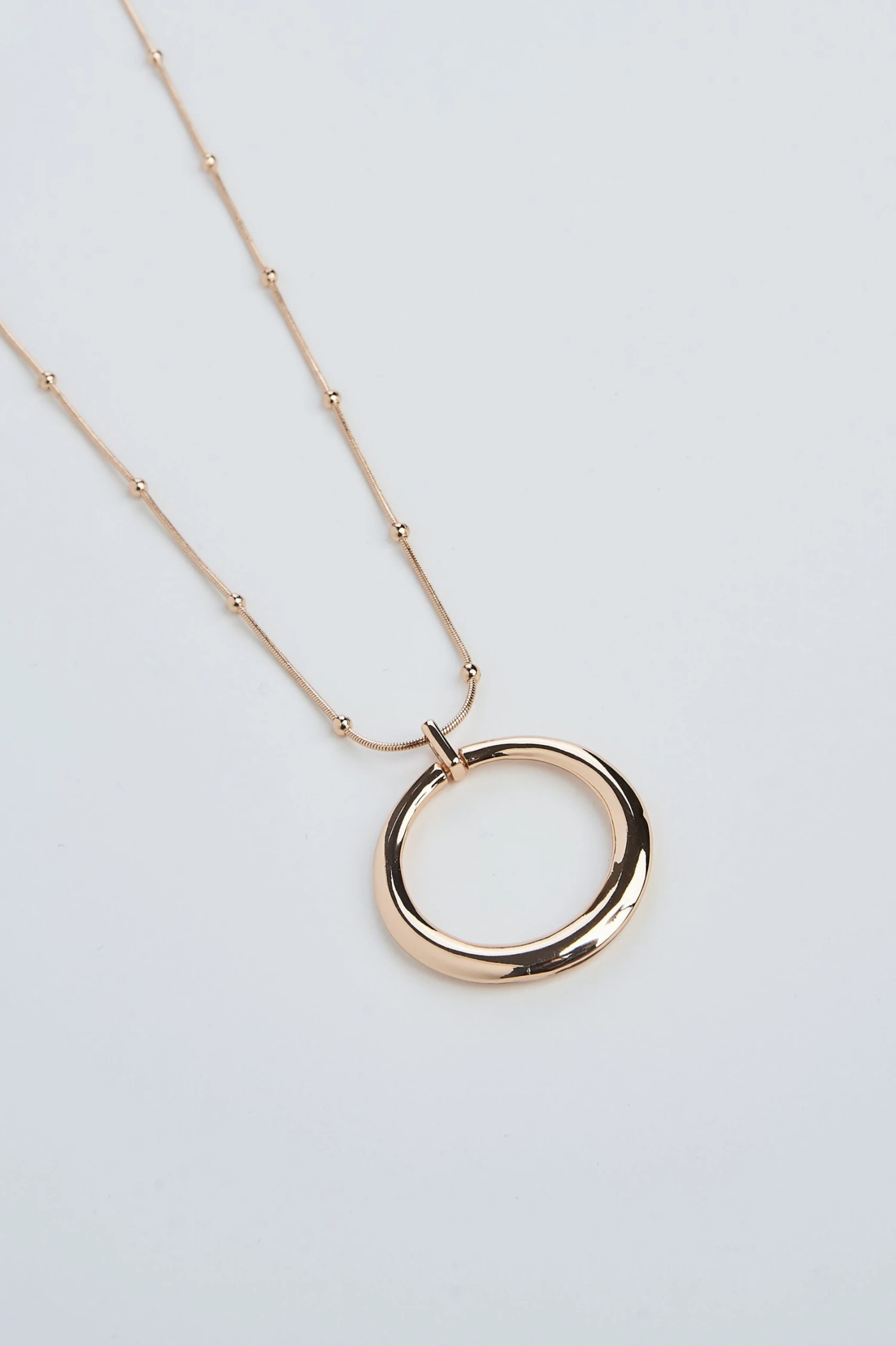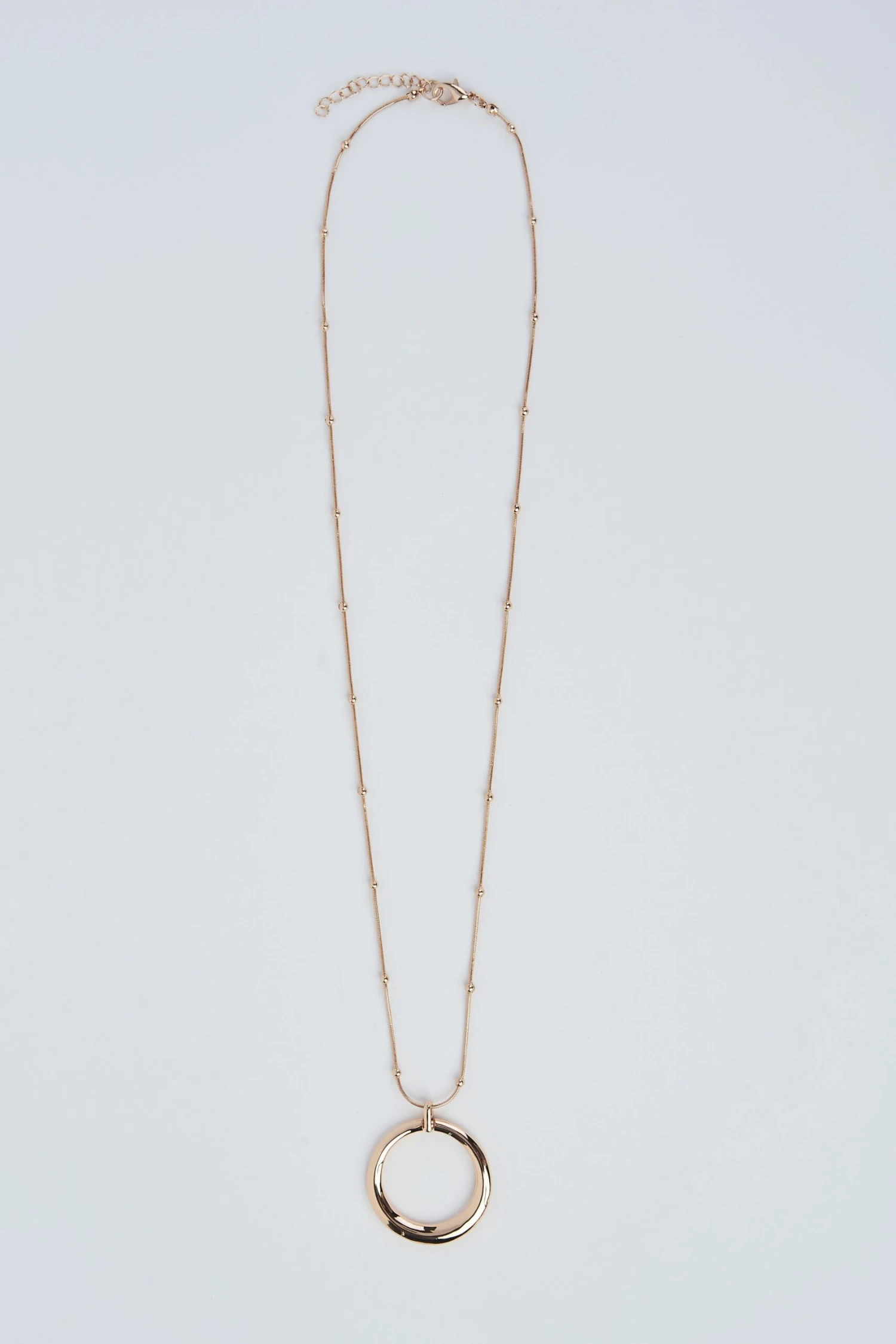 In a classic style, the Vanessa Pendant features a delicate satellite chain and hoop pendant. The simplicity and timelessness of this necklace are all part of its charm. Add a formal touch to your Drop Shoulder Linen Dress or Ruched Sleeve T-Shirt with this golden beauty.