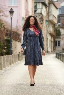 Turn heads in our Velvet Burnout Dress. Made from a dreamy velvet devore fabrication in Gunmetal Grey, this dress features an Animal Burnout pattern with a crinkle effect creating a shimmering textured look. You’ll love the comfortable, relaxed fit of this special occasion dress.