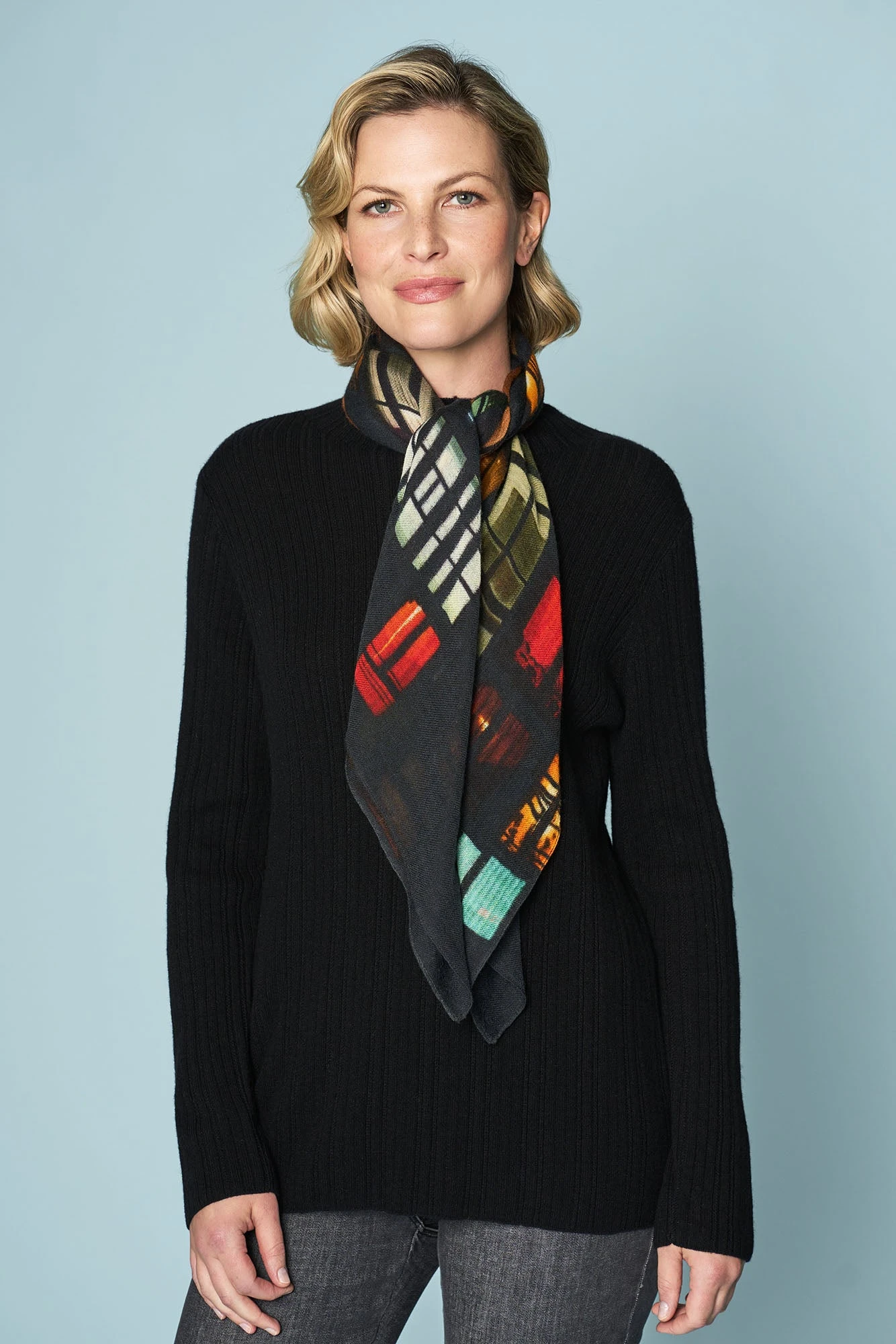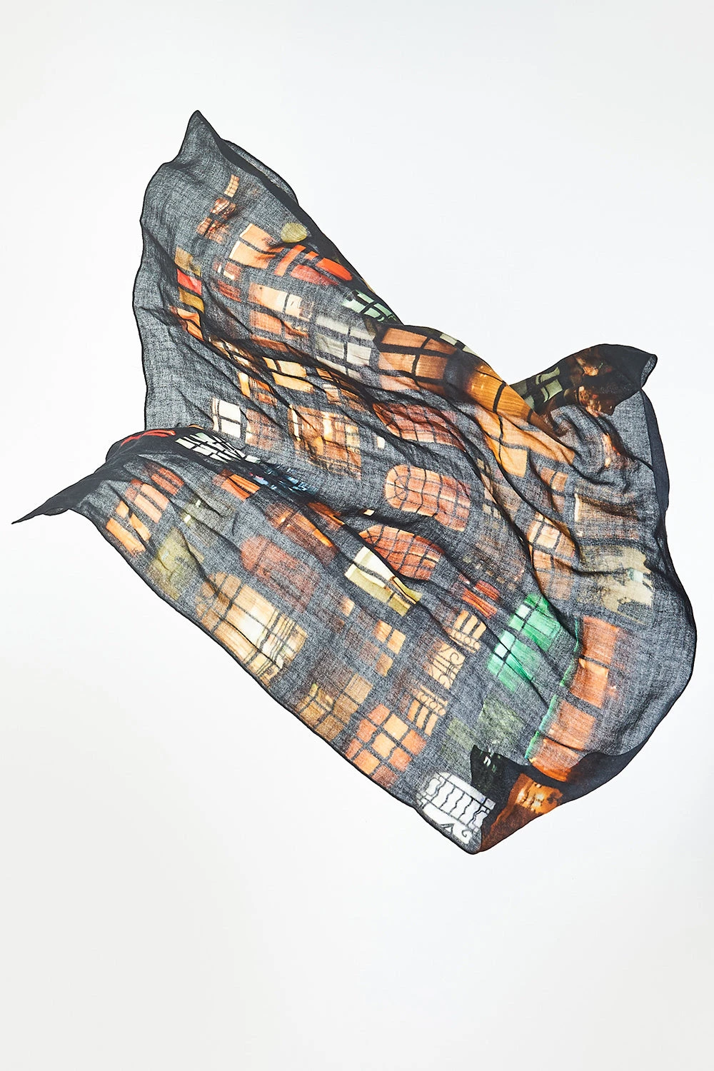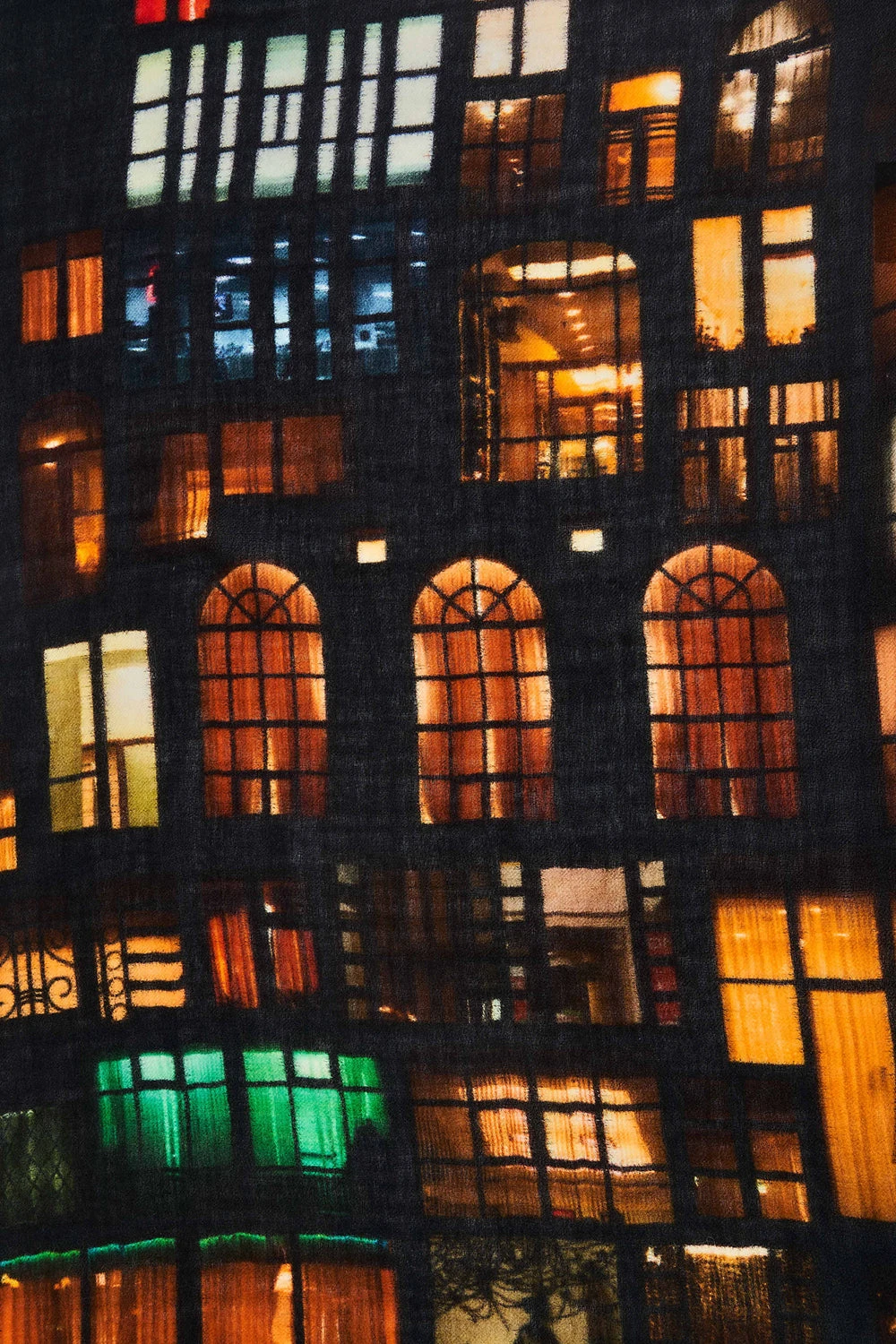 See Paris through every window of this beautiful Windows Wool Scarf. Crafted from 100% wool twill, this scarf presents the city of lights à minuit (at midnight), and features a bold Navy-coloured base.